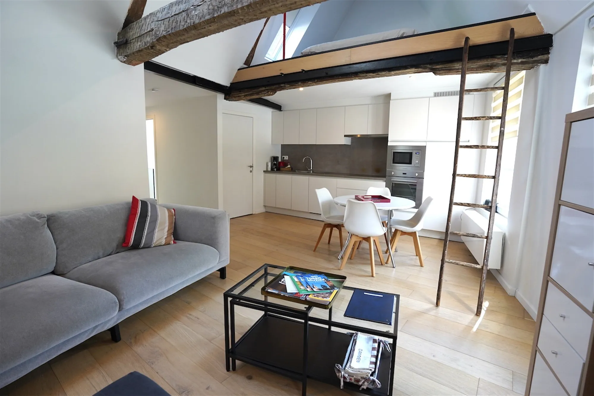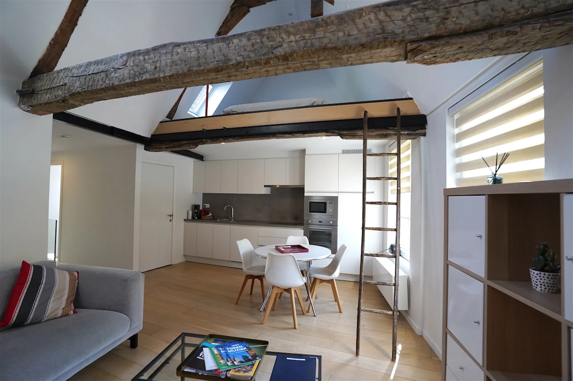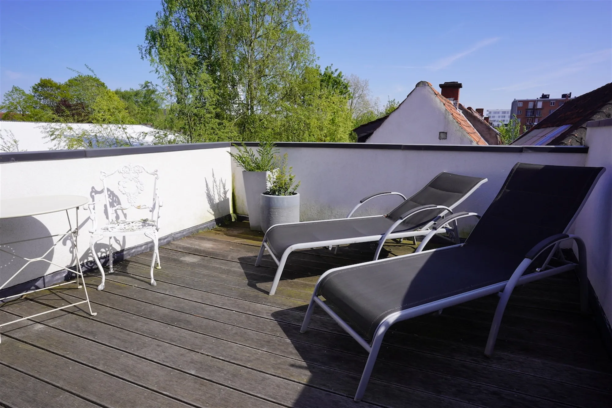 Hip, trendy en niet alledaags appartement aan de rand van de stad met zicht op het Astridpark. Gelegen boven een handelszaak en voorzien van een privatieve inkom. Oogstrelend en pittig interieur met een bleke parket en heldere looks! Stralend wit ingerichte keuken met meterslange, praktische bergkasten. 1 mooie slaapkamer en 1 mezanine die uitnodigend slaapplaats biedt voor gasten - badkamer voorzien van inloopdouche en dubbele lavabo - afzonderlijk toilet. Heerlijk, zuiders gericht terras (16 m2) met een view! Mega ligging! Wandel- en fietspaden op een paar honderd meter langs de Leie boorden.
