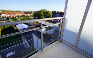 Het penthouse beschikt over: Een inkomhal met gastentoilet - volledige rolstoeltoegankelijk en voorzien van videofoon - Een lichte living dankzij grote panoramische ramen en een terras zowel voor- als achteraan -