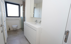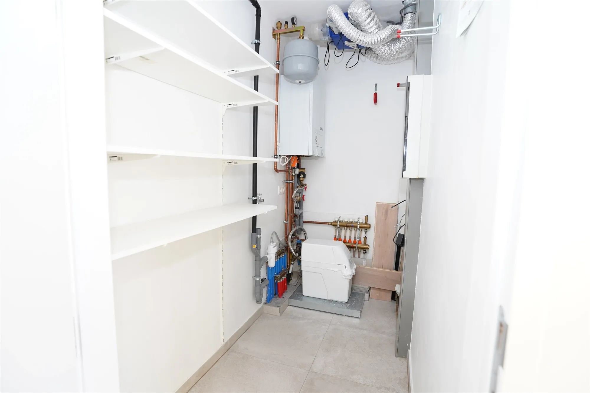 Een functioneel ingerichte keuken met kwalitatieve toestellen - prettige badkamer met mooie douche - Twee slaapkamers met warme parketvloer - Praktische was- en berging