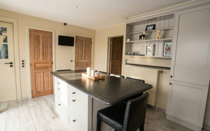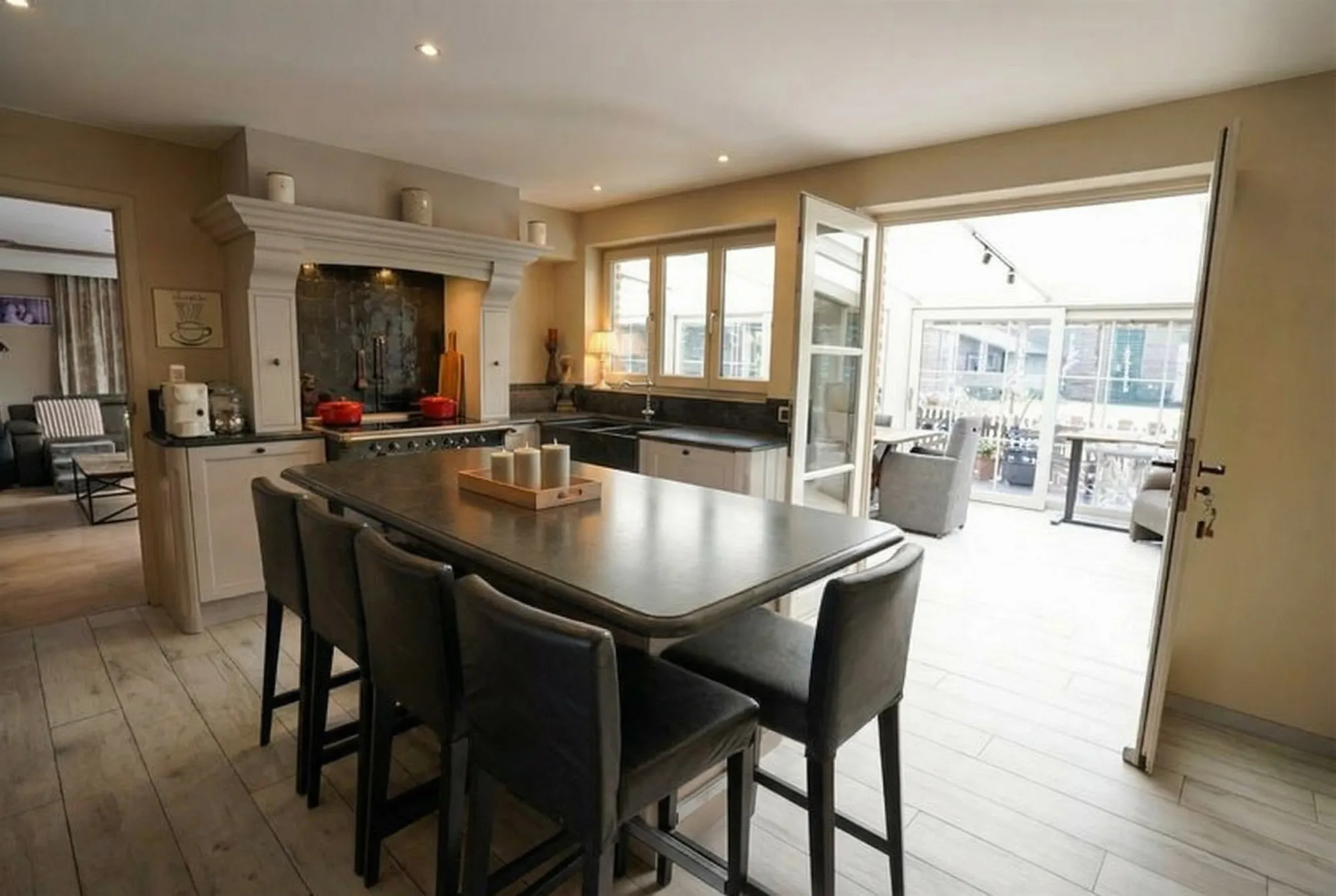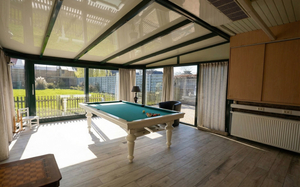 Geschikt voor wie op zoek is naar ruimte en beroepsmogelijkheden. Met een woonoppervlakte van 264 m² op een perceel van 1617 m² heeft deze eigendom heel wat in petto! De grote parkeermogelijkheden voor zes wagens en een carport voor drie doen hier vlot hun werk – bezoek over de vloer? Geen stress, iedereen kan gewoon blijven. Bureel met afzonderlijk sanitair op gelijkvloers - inkom - leefruimte - gezellige cottage eetkeuken met toestellen - royale veranda met schuivende raampartijen - bijzondere highlights zijn een poolroom met biljarttafel en praktische werkruimtes- vogelverblijf... De tuin is volledig omheind en beschikt over een ruime tuinberging en een boomhut.