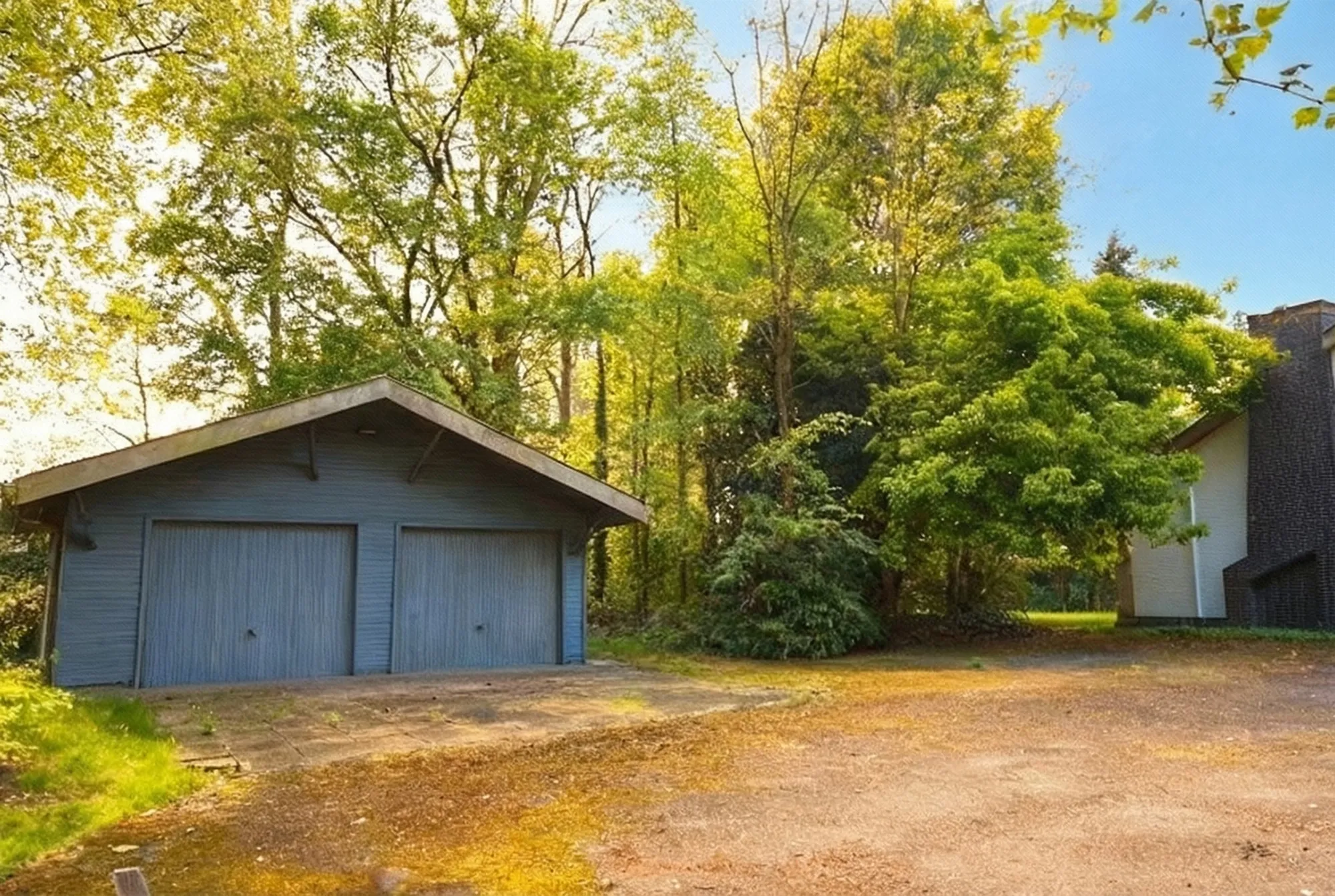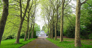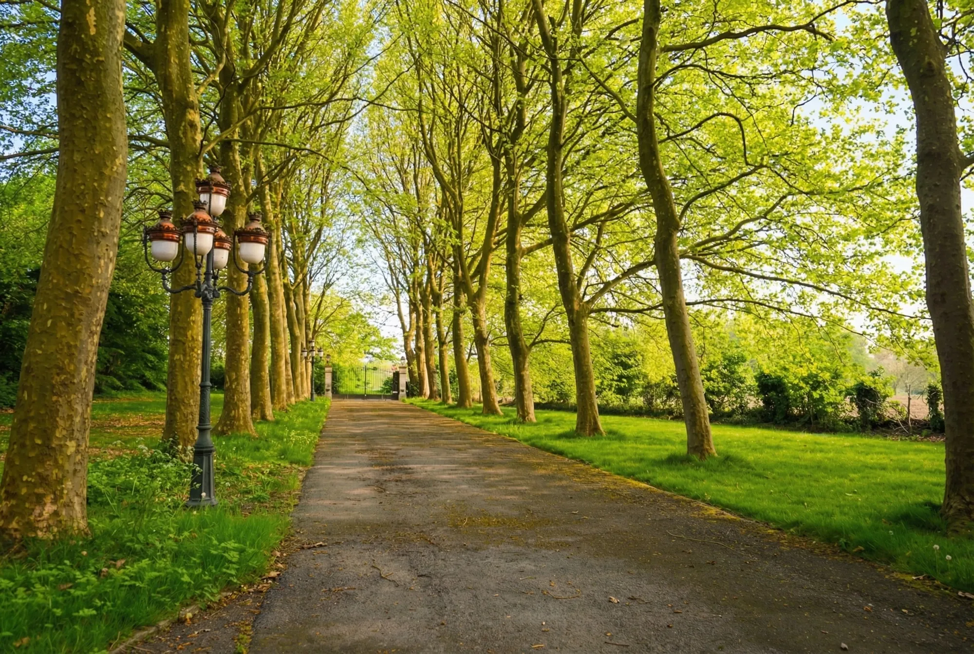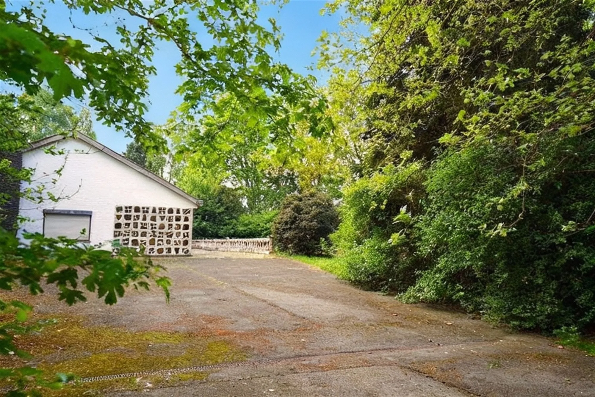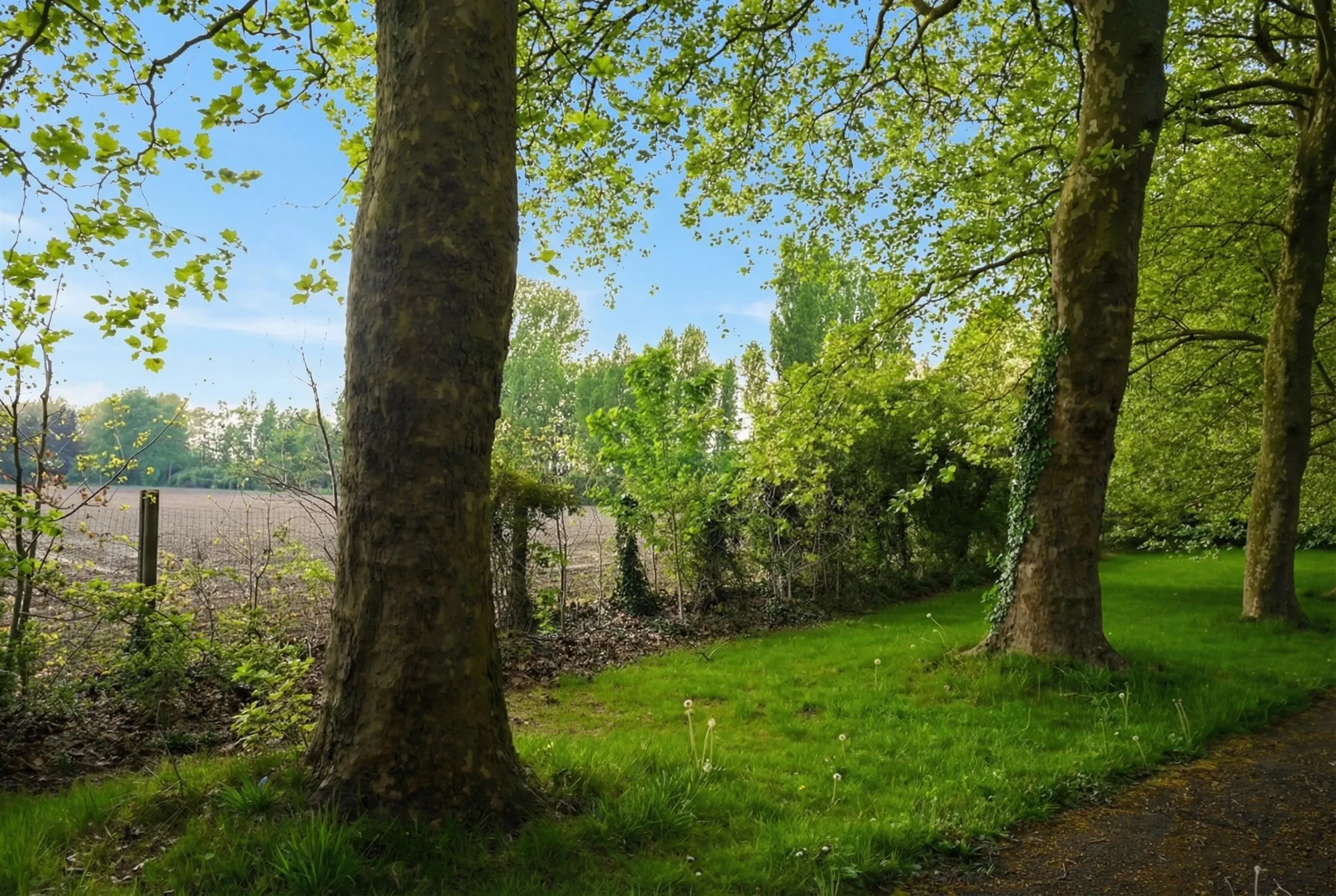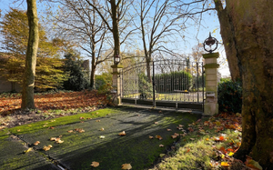 Deze eigendom is bereikbaar via een lange oprijlaan die geflankeerd wordt door imposante bomen.