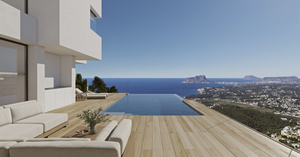 Op de begane grond is de ruime leefruimte, een grote open keuken met een indrukwekkend eiland, met een ontbijtbank, open zicht naar de veranda, een spectaculaire zomer eetkamer met uitzicht op de zee, met barbecue en buiten badkamer. De woon-eetkamer heeft ook een prachtige veranda, die het idee van "buiten leven" verder versterkt met verschillende zithoeken naast het overloopzwembad en een jacuzzi, om te genieten van de heerlijke zonnige dagen die de Costa Blanca biedt zonder het zicht op de Middellandse Zee te verliezen.