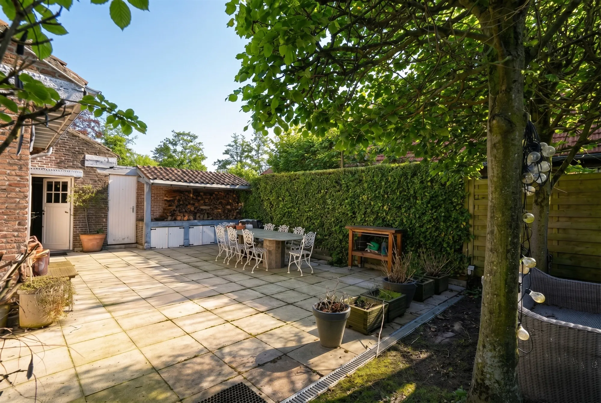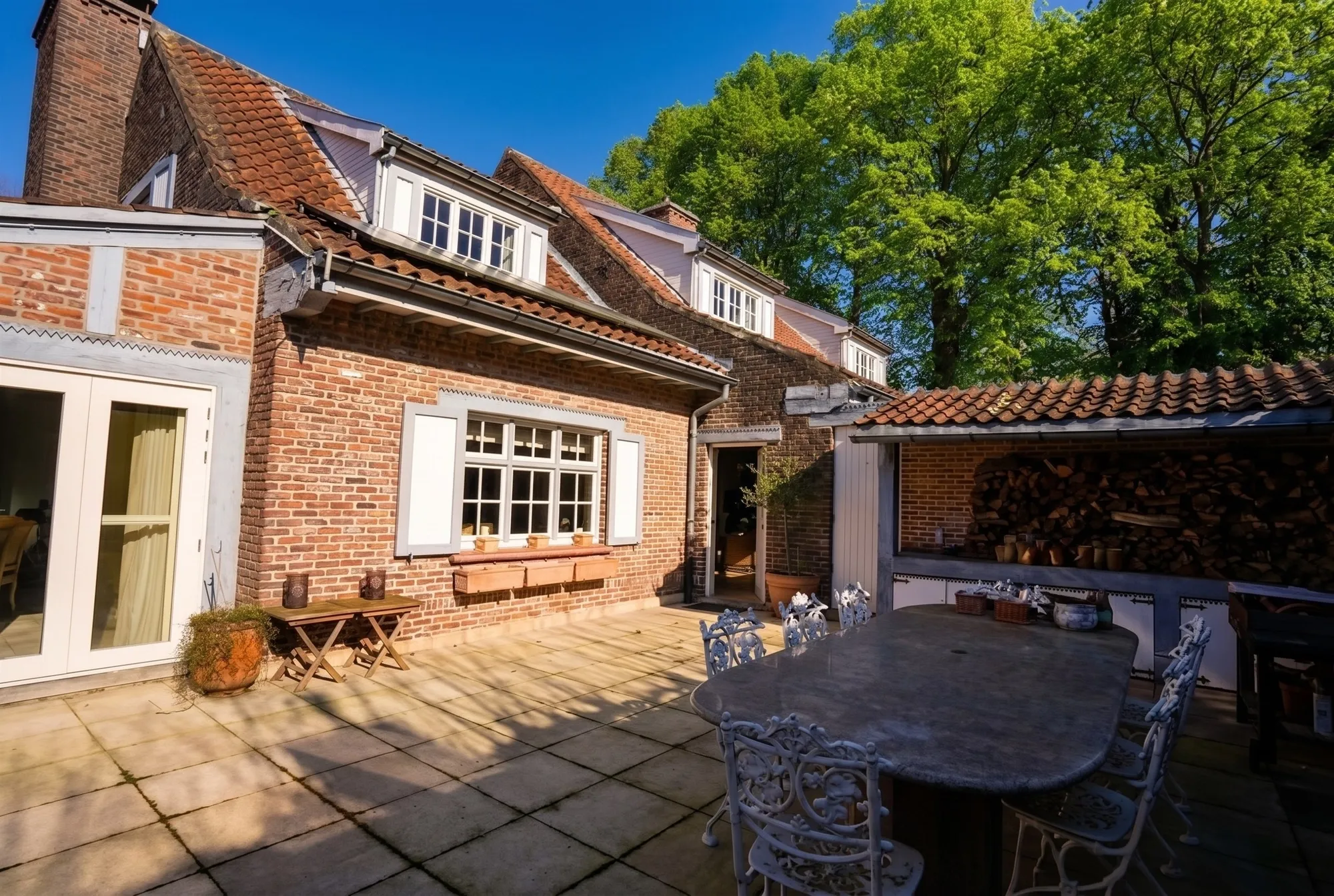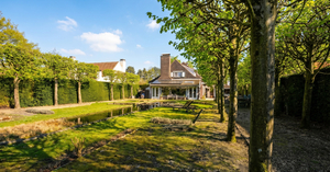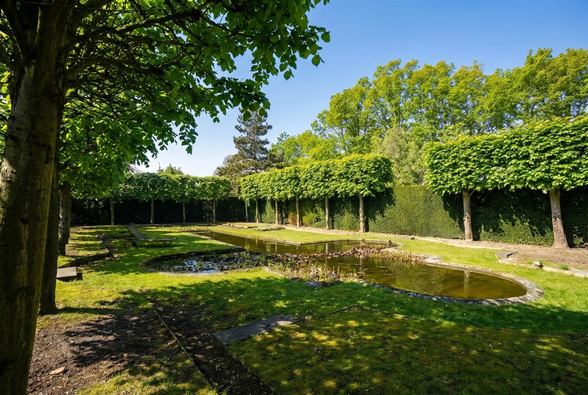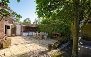 De woning straalt charme en warmte uit, en is omgeven door een weelderige, groene tuin met sfeervolle waterpartij.