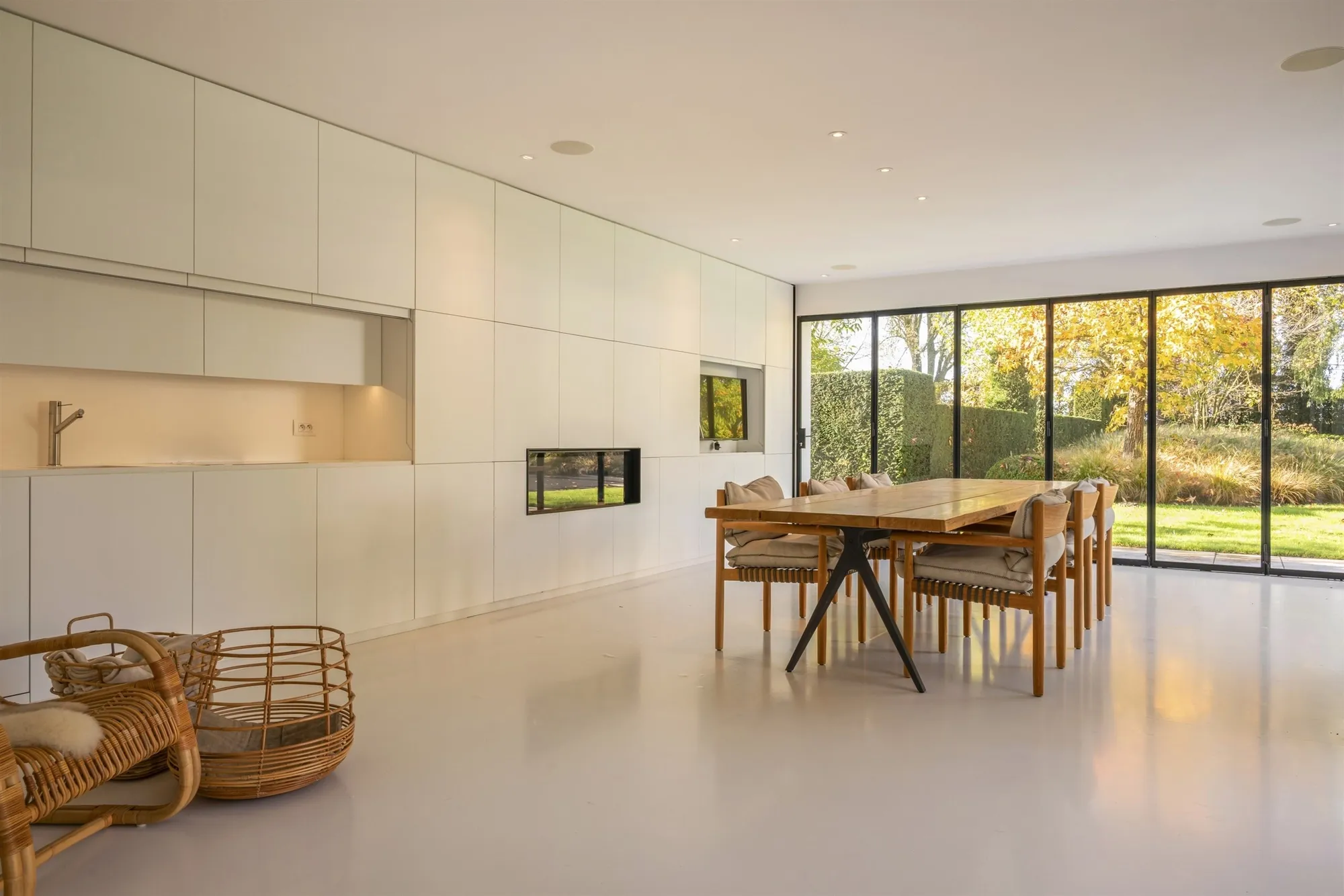 De kloostergang, een uniek architecturaal statement, zet de toon en verwelkomt met een tijdloze elegantie - Riante leefruimte van 100 m² met open haard - Leefkeuken uitgerust met doordachte functionaliteit en materialen, combineert gemak met stijl - de gelijkvloerse master suite biedt luxe en comfort met een ruime badkamer, royale dressing en een terras met zicht op zwembad en innemende tuin - volledig uitgeruste wasplaats voorzien van maatkasten - ruime kelder met wijnkelder