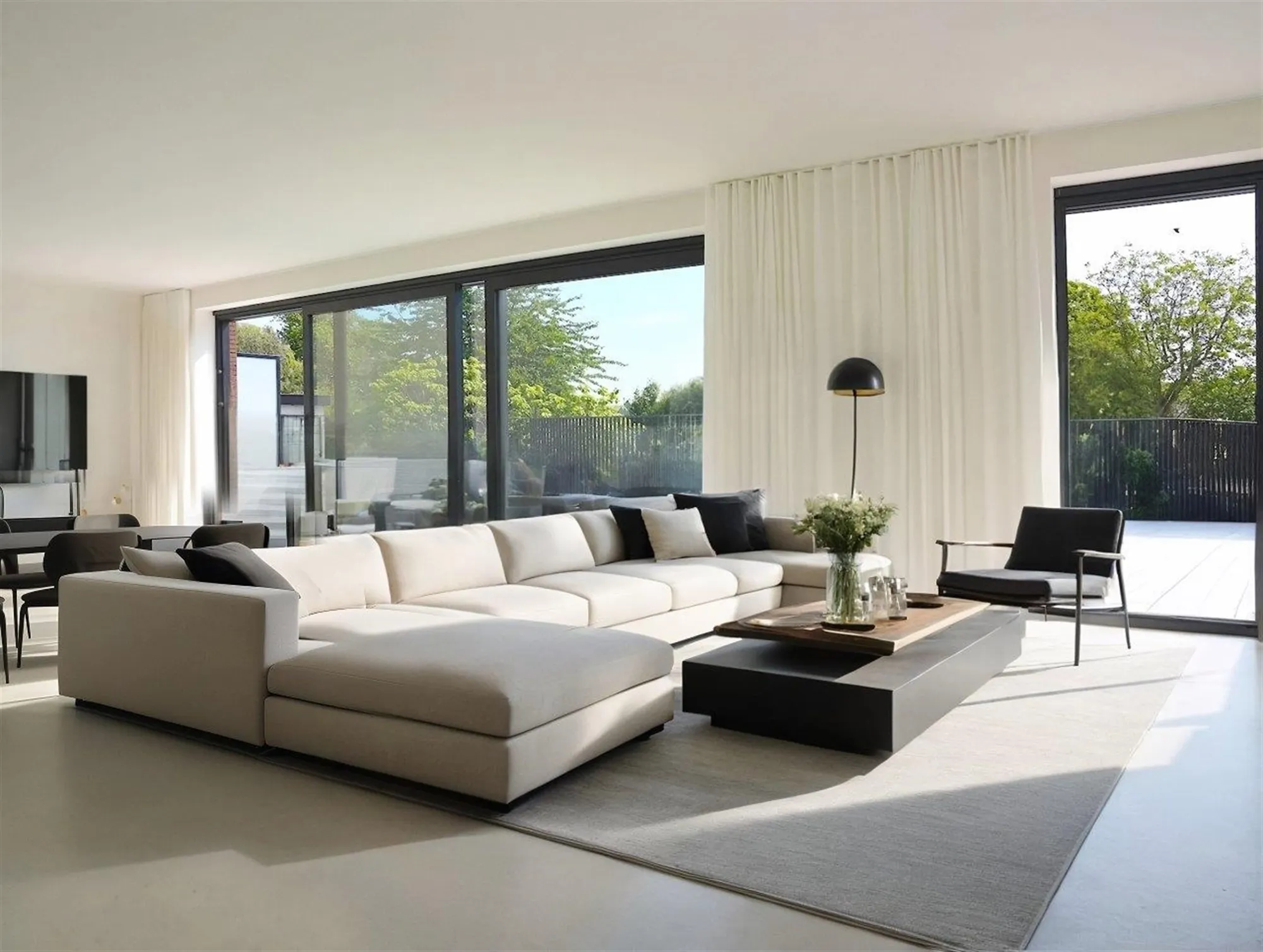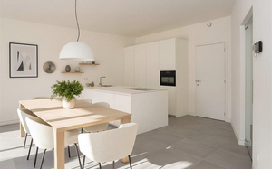Indeling: Inkomhal met apart gastentoilet - Lichtrijke woonkamer met grote panoramische ramen met rechtstreeks terras contact - open, kwalitatieve keuken in strak wit design, volledig uitgerust met inbouwtoestellen -
